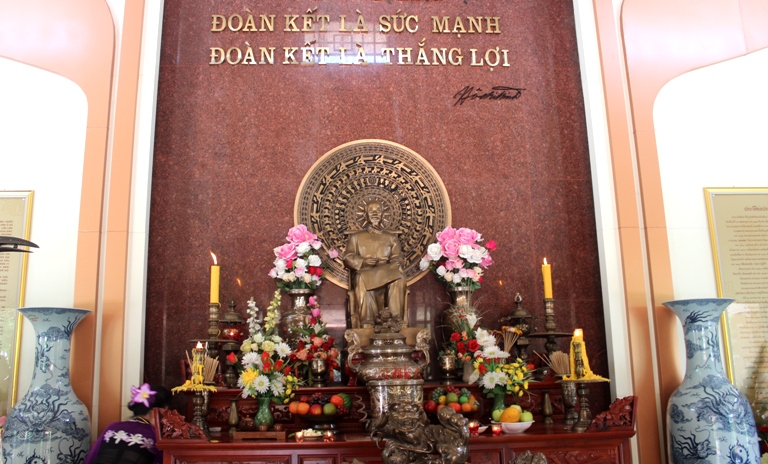 Bàn thờ Chủ tịch Hồ Chí Minh được đặt trang trọng ở chính giữa, để khách tới tham quan bày tỏ lòng thành kính với Người (Ảnh: Việt Hà) |
