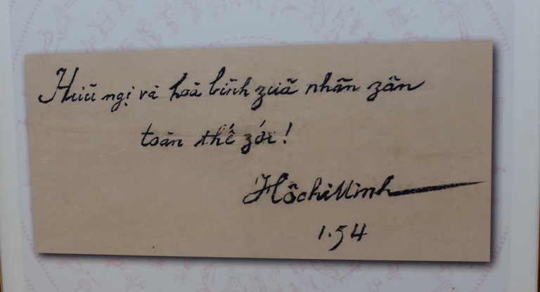 Bút tích của Chủ tịch Hồ Chí Minh được trưng bày tại Khu Di tích
