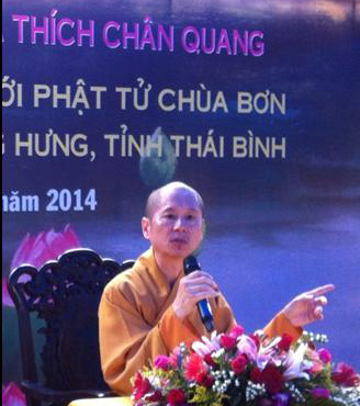Thượng tọa Thích Chân Quang đang thuyết giảng Phật pháp tại Chùa Bơn