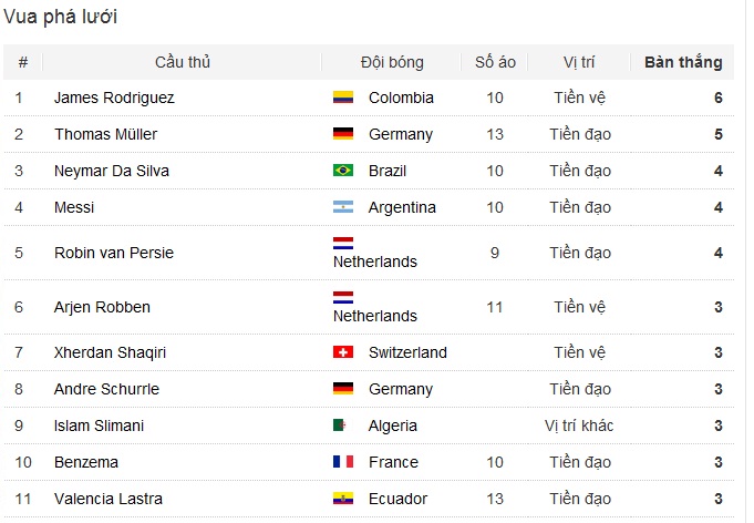Chuẩn Tương phảnDanh sách các cầu thủ ghi bàn tại FIFA World Cup 2014